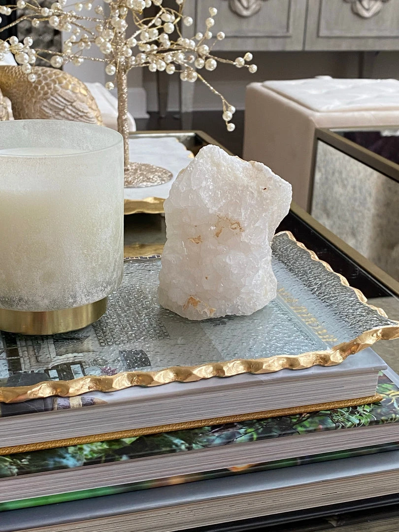 Description: This beauitful crystal geode is a natural beauty! We love to bring natural elements into our decor without sacrificing the glamour!