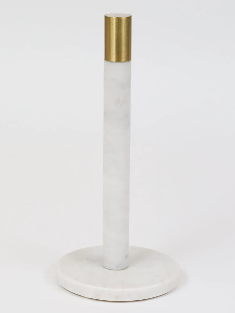 Description: We are in LOVE with this marble paper towel holder! The design is simple but elegant, with a completely marble base accented with a gold metal tip. Perfect for any home, and adds some elegance to your kitchen!
