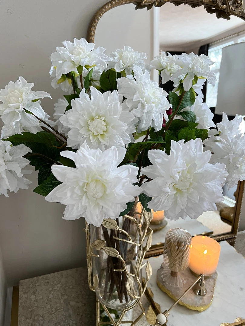 Description: These Dahlia stems feel so real! They are so beautiful in each color and will bring vibrance and life to your space!