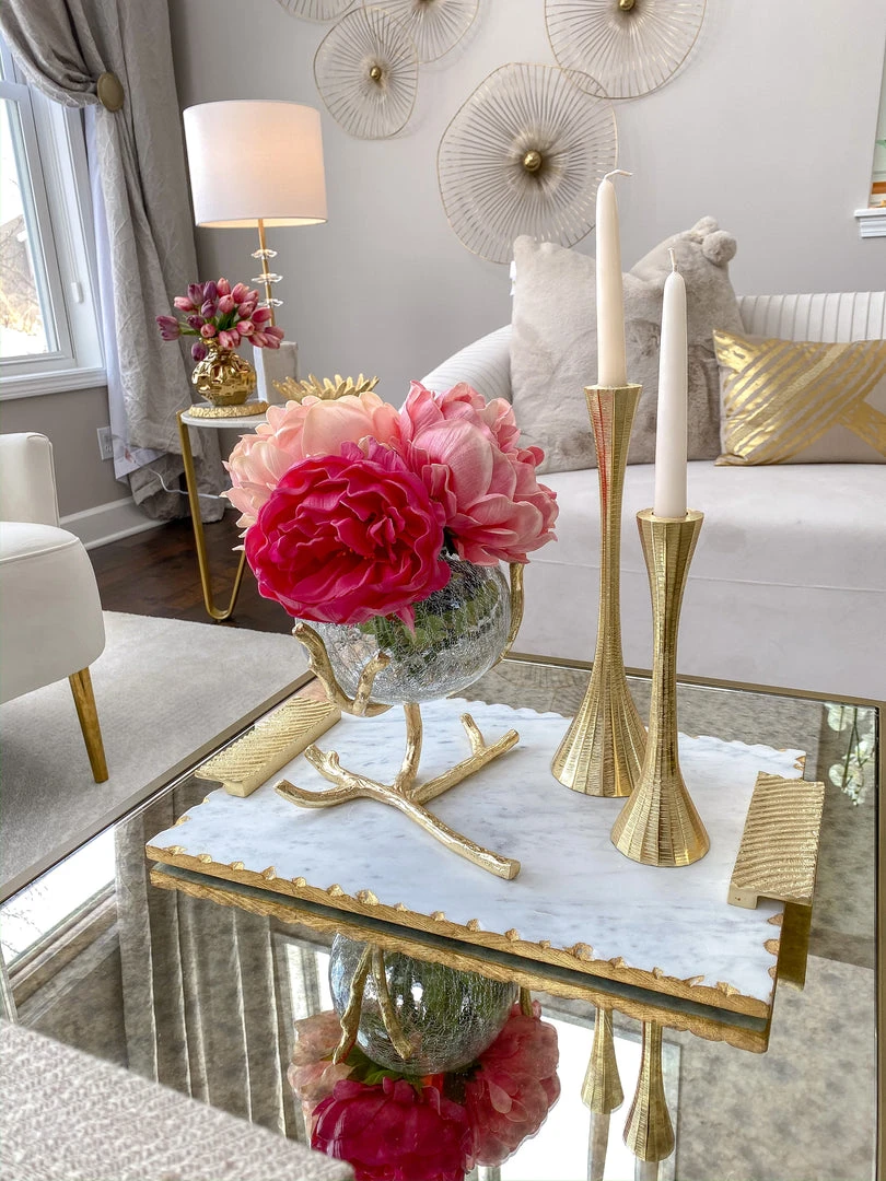 Inspire Me! Home Decor White Ceramic Candle Holder With Gold Elegant Details (2 Sizes)