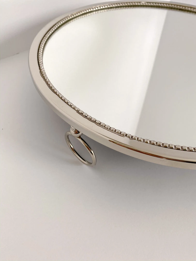 Description: This tray is a must have item! The design is simple but unique, sleek, and sophisticated. Available in silver and gold, this tray is a universal piece.