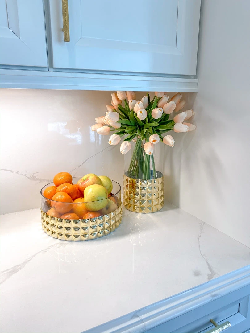 Description: This beautiful studded glass vase is perfect for your home decor! Display on its own or with your favorite florals to make the perfect statement peice!