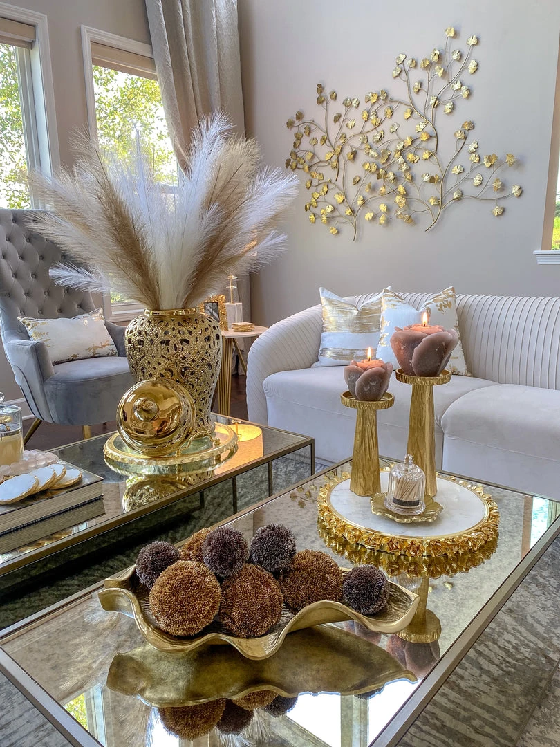 Description: This stunning wall art bring the beauty of nature into your home! The gold branches fill with gold leaves to create a stunning visual of natural elegance. Like Farah, you can style multiple pieces to create a fuller look! (4 pieces styled on Farah’s wall)