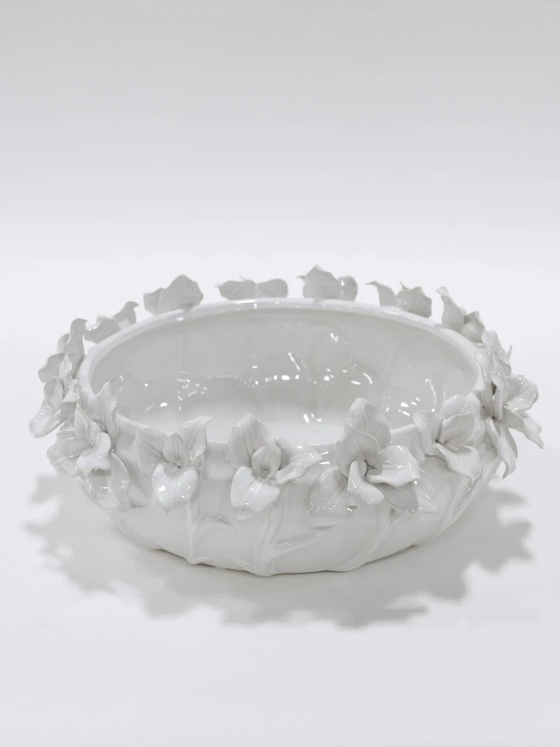 Descriptions: This beautiful ceramic floral vase would make a stunning display for your favoritie fruits or florals! We love the beautiful details in each flower.