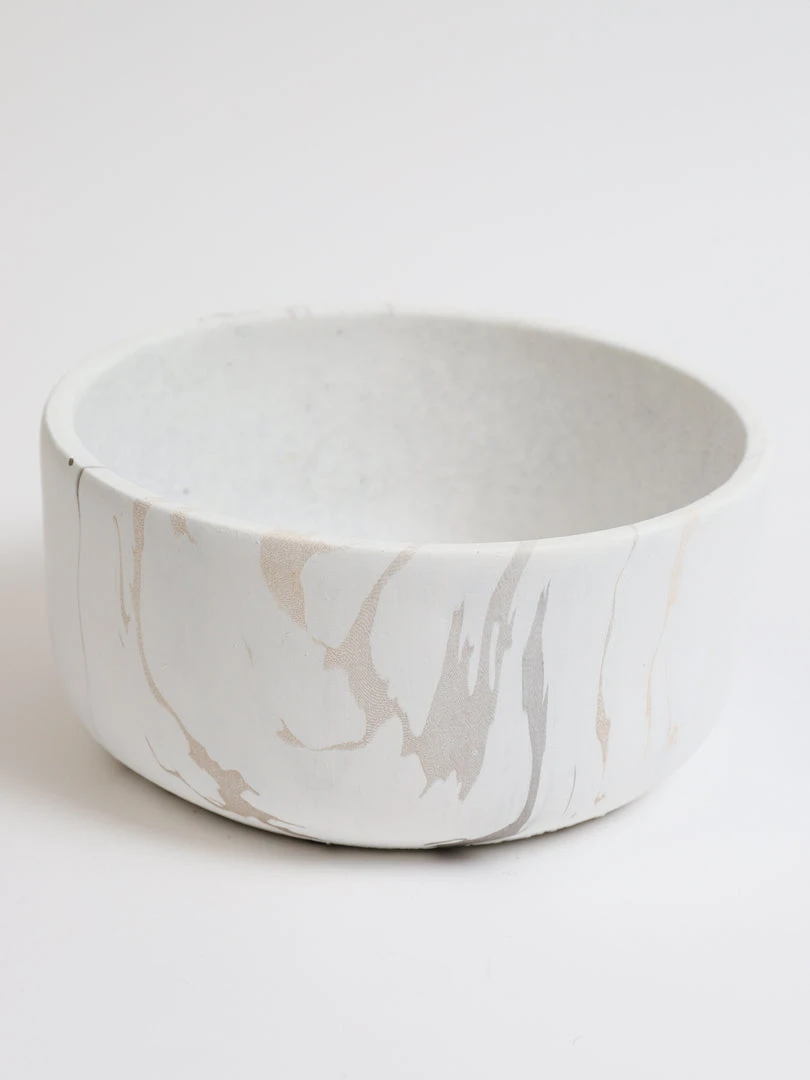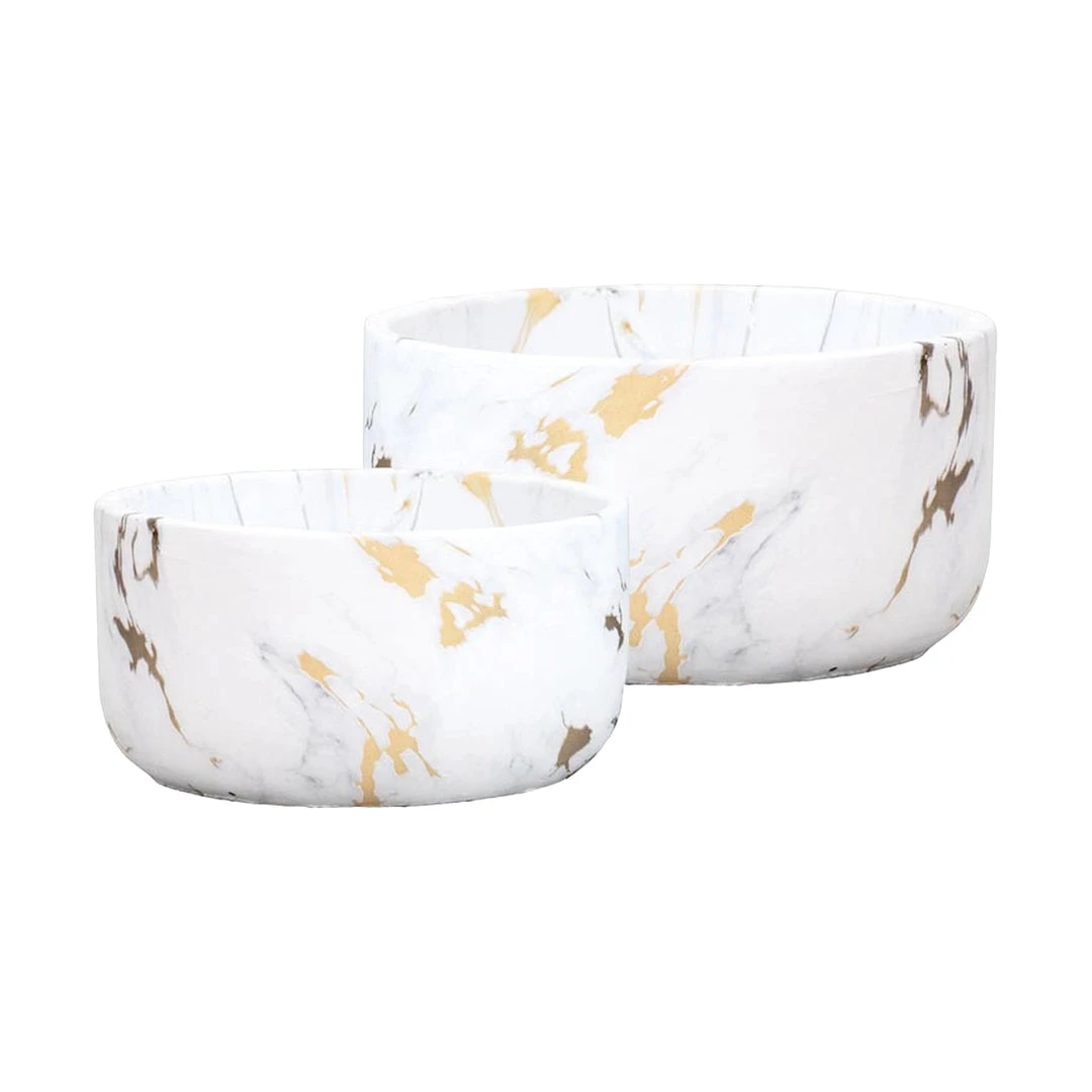 Description: This is a gold and white marble planter/vase that will look great with any style of decor. Fill with faux florals or other items.