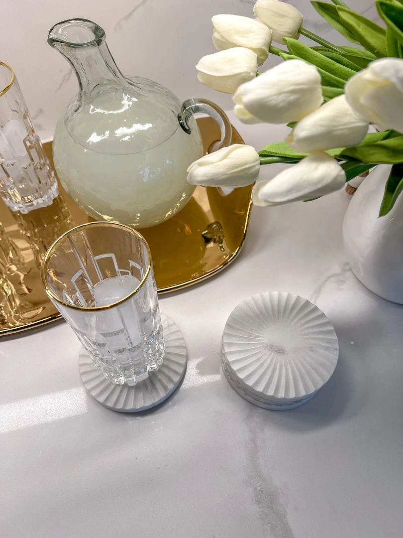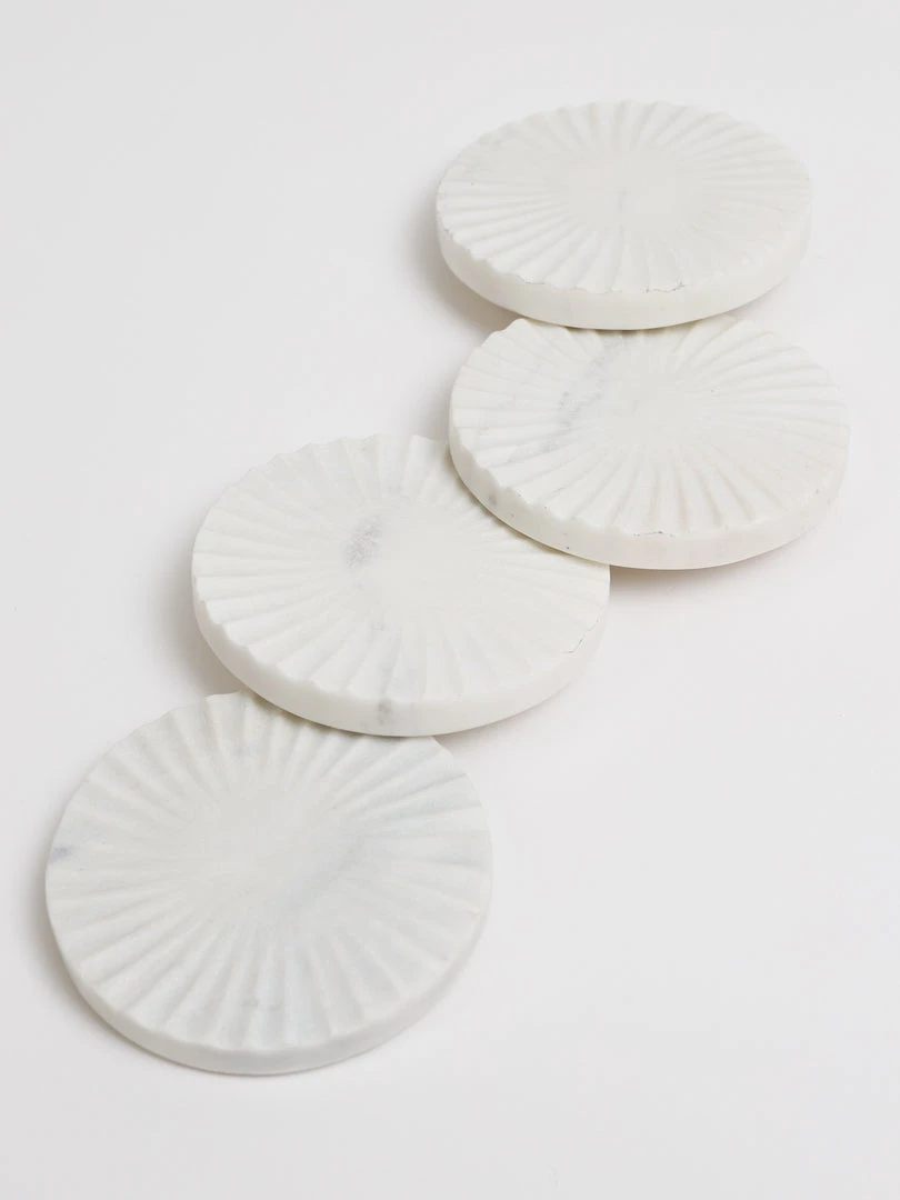 Description: These carved white marble coasters are simple yet beautiful. You can always use some marble coasters on your side table or coffee table!