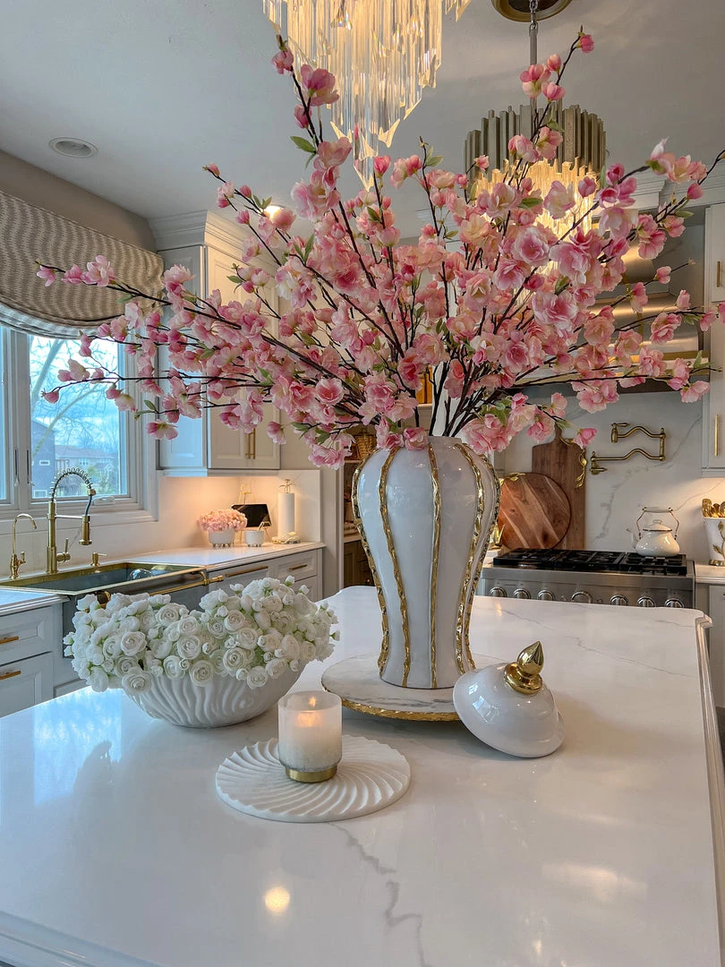 Inspire Me! Home Decor Rectangular Marble Tray With Cherry Blossom Details