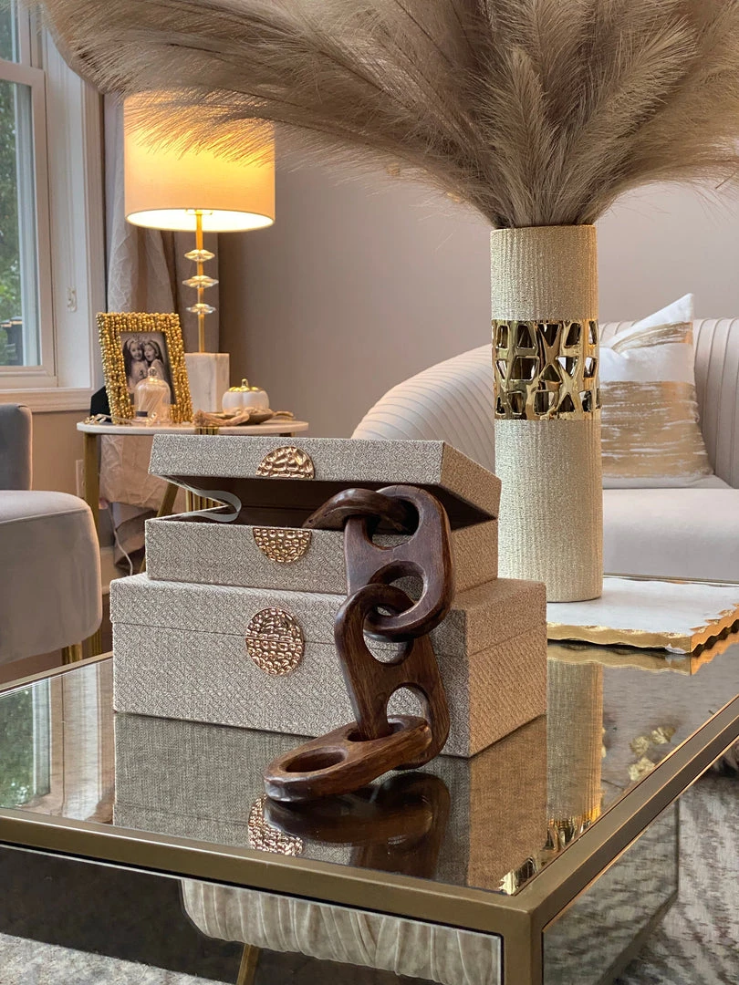 Description: This wooden chain decor is a great focal piece for your vignette! We love the warm tones and unique design, perfect for fall styling!